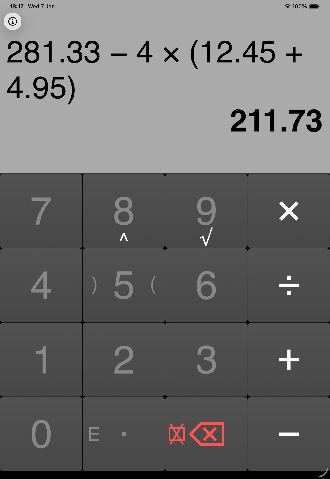 FastCalc lite on iPad